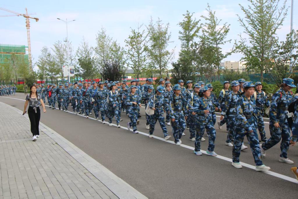 下午3时,新生于新操场准时集结。随着军训总指挥一声令下,拉练正式启动。“飞鹰一连”、“战狼二连”、“猎豹三连”三面旗帜迎风招展,各连队在教官与辅导员带领下沿预定路线行进。拉练全程约10公里,设有模拟战场烟雾区、铁丝网障碍及低姿匍匐通过等多类战术项目,路线设计科学严谨,在确保安全的同时,有效磨砺学生意志品质与应急能力。