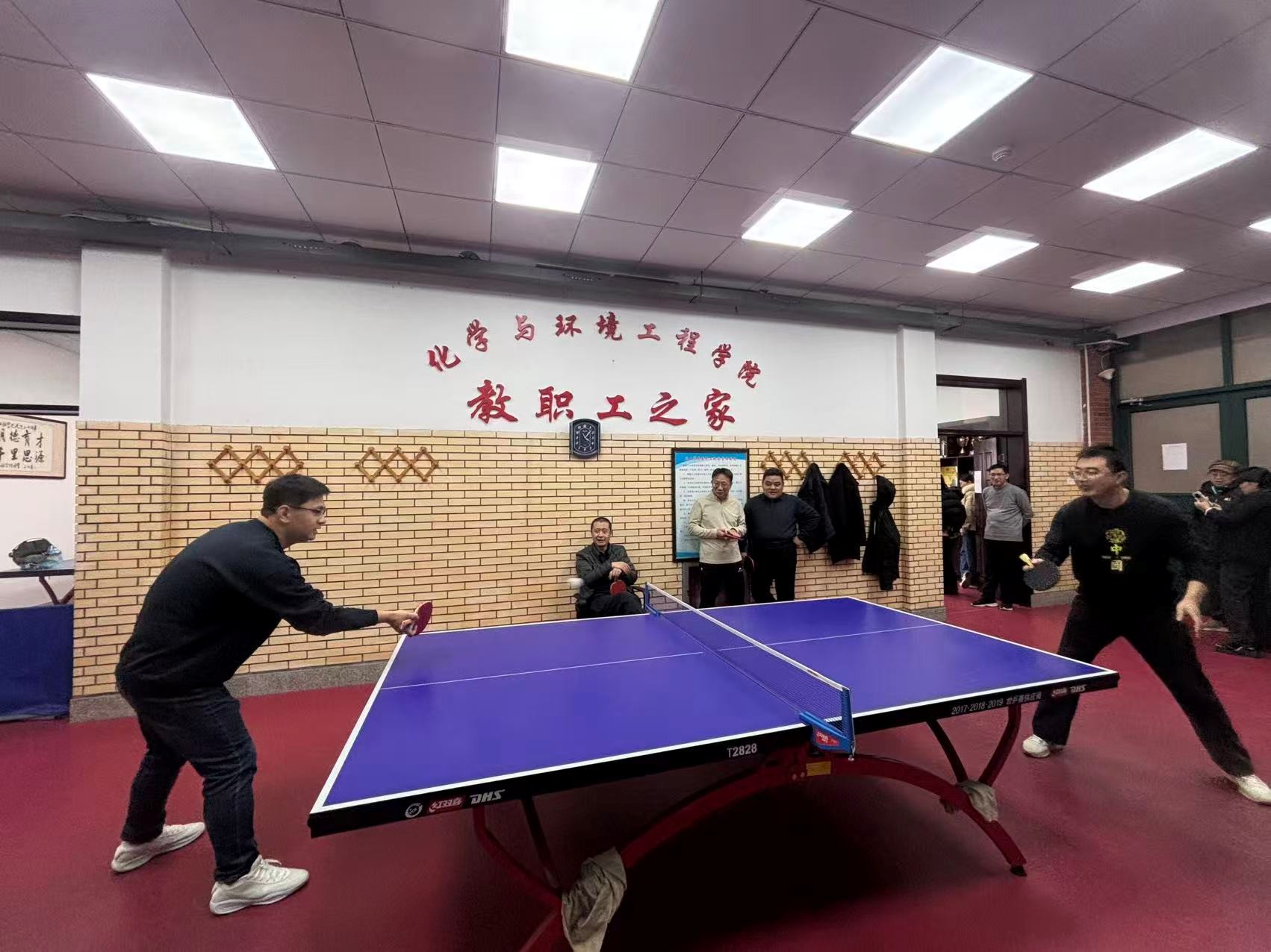 12月16日下午,av视频工会在教工之家举办2025年教职工乒乓球比赛。比赛以“爱‘乒’才会赢,你来你也行;‘乒’出你风采,展现化院情”为主题,吸引了学院机关、应化系、生工系、化工系和实验中心五支队伍踊跃参与。