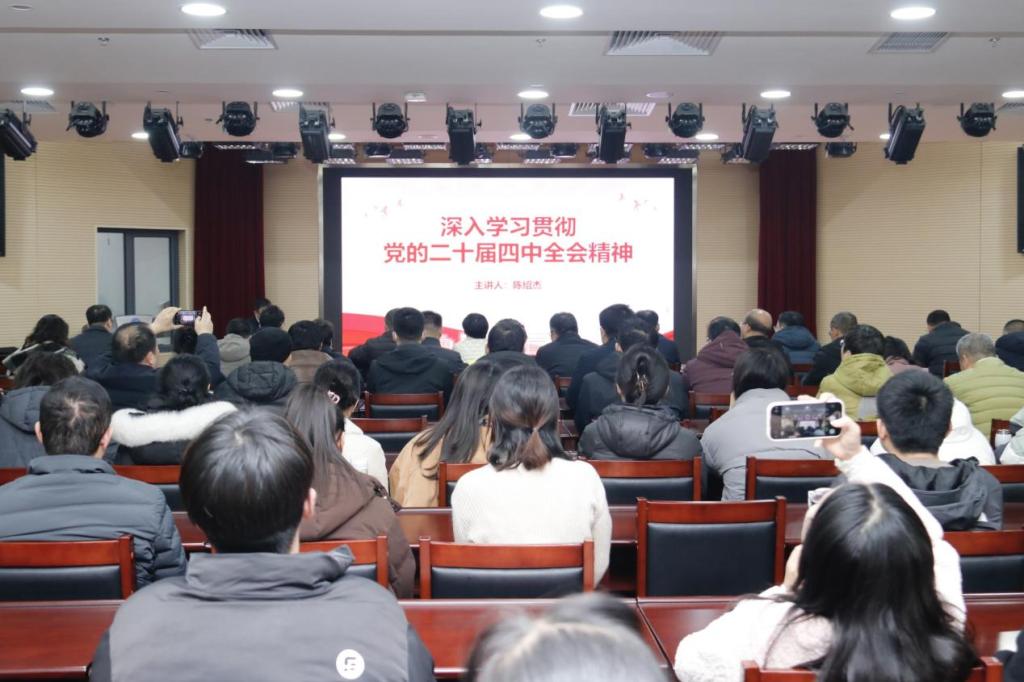 为深入学习贯彻党的二十届四中全会精神,引导师生统一思想、凝聚共识,12月16日,校党委常委、副校长陈绍杰为av视频等单位师生宣讲党的二十届四中全会精神。