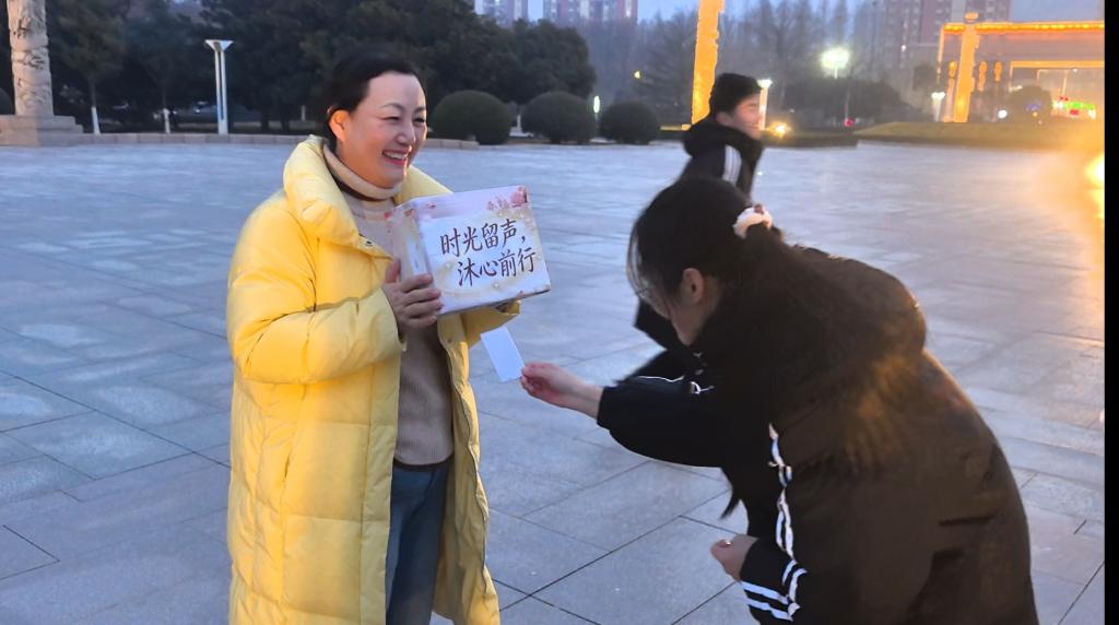 随后,师生移步泰山广场。在国旗下,同学们庄重地向“树洞”投递心愿笺,写下对未来的憧憬与期许。活动现场温馨而庄重,一张张信笺承载着真挚心声与青春梦想,也见证着同学们在回望与展望之间的自我对话和信念锚定。