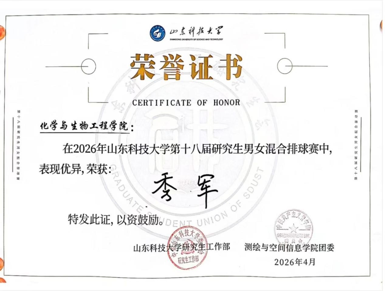 4月2日,av视频 第十八届研究生男女混合排球赛在风雨操场圆满结束,av视频研究生排球队凭借顽强斗志与默契配合一路奋勇拼搏,最终斩获季军。赛场上av视频 队员精神抖擞、配合默契,发球精准、扣杀有力、拦网稳固。场边师生拉拉队助威不断,呐喊声此起彼伏,尽显全院上下凝心聚力的浓厚氛围。此次比赛不仅为学子搭建了切磋交流的平台,更增强了学院凝聚力。学院也将以此次赛事为契机,持续推动文体活动与科研学习深度融合,激励全院学子以更饱满的热情、更昂扬的姿态投身学习科研,在逐梦路上奋勇争先。