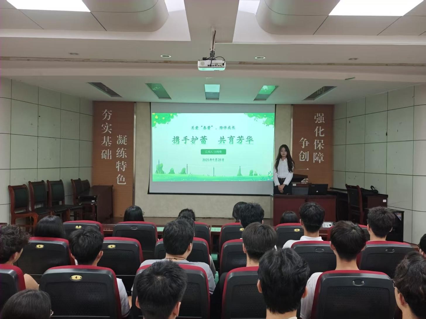 2025年9月28日,av视频“关爱‘春蕾’,陪伴成长”主题团课在J2-104召开,作为该系列主题团课的第二讲,此次课程的主题是“携手护蕾 共育芳华”,由“护蕾”志愿者刘雅雯主讲,全体学生会成员参加。