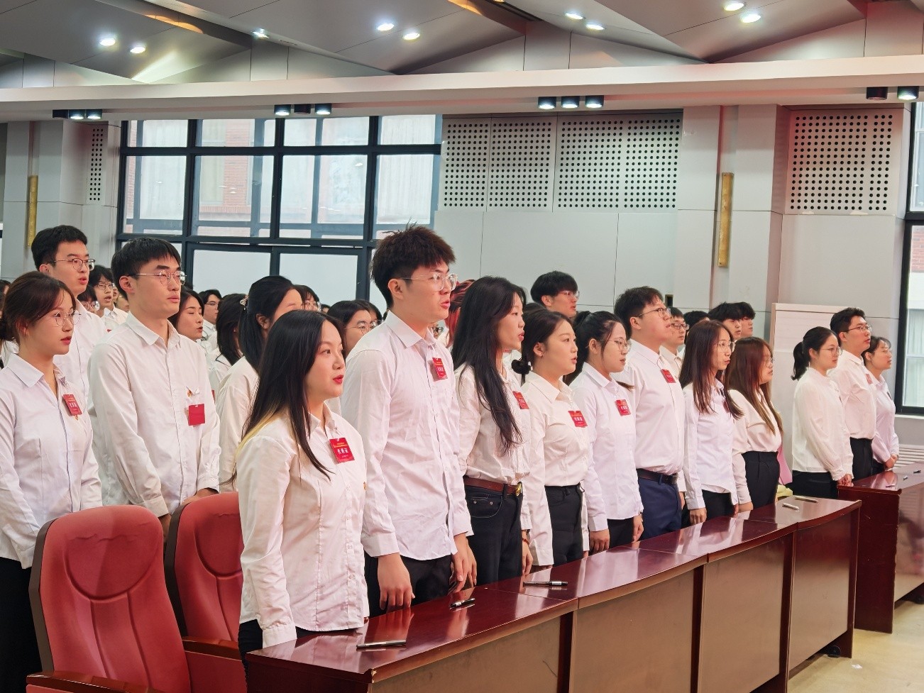 大会在庄严的国歌声中开幕。学校团委书记高一丹致辞,对大会的召开表示热烈祝贺,对av视频共青团五年来在思想引领、实践育人、组织建设等方面取得的显著成绩给予充分肯定。她指出,av视频团委以“凸显亮点、多点结合、全局联动、持续深耕、整体提升”为工作理念,将田径队建设和学风建设两大亮点工作与思想引领、志愿服务等多项工作有机结合,形成了独具特色的工作格局。围绕学院共青团工作和全体团员青年,她提出三点希望:一要做红心向党的引领者,在铸魂育人中把牢青春航向;二要做服务大局的践行者,在强国实践中彰显青春担当;三要做改革创新的推动者,在从严治团中激发组织活力。