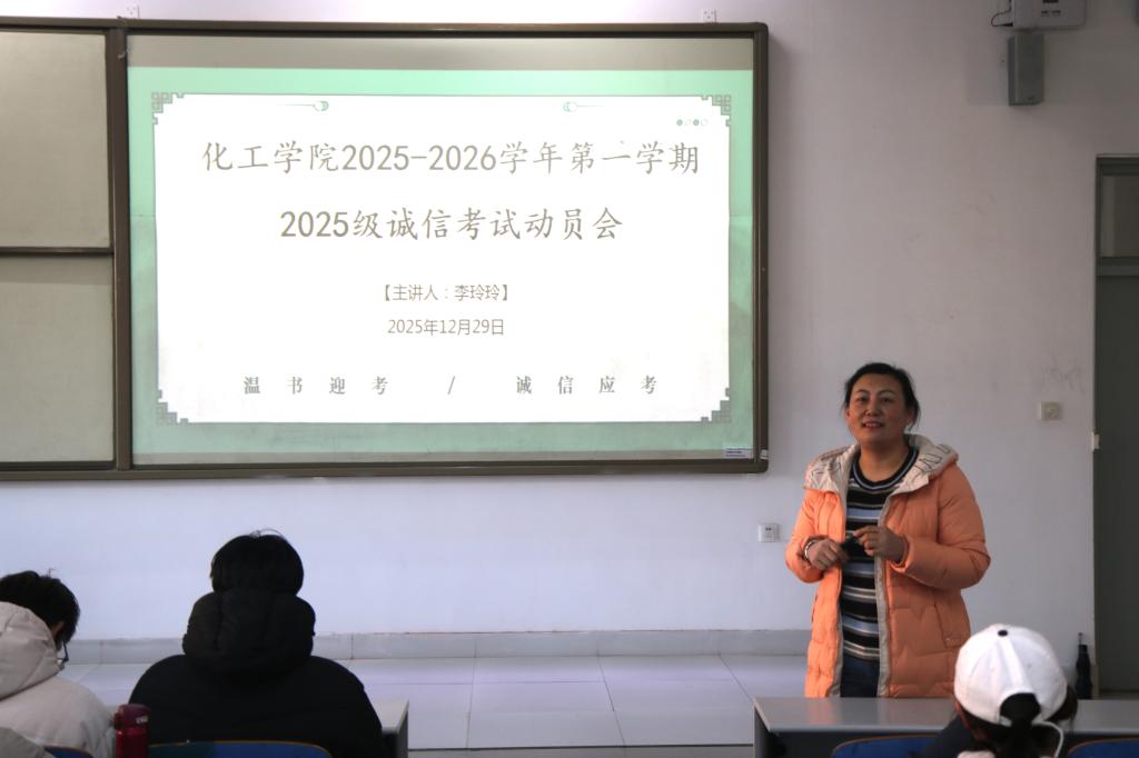 12月29日,av视频在J1-228教室召开2025级本科生诚信考试动员会。本次会议由2025级辅导员李玲玲老师主持,全体2025级本科生到场聆听。